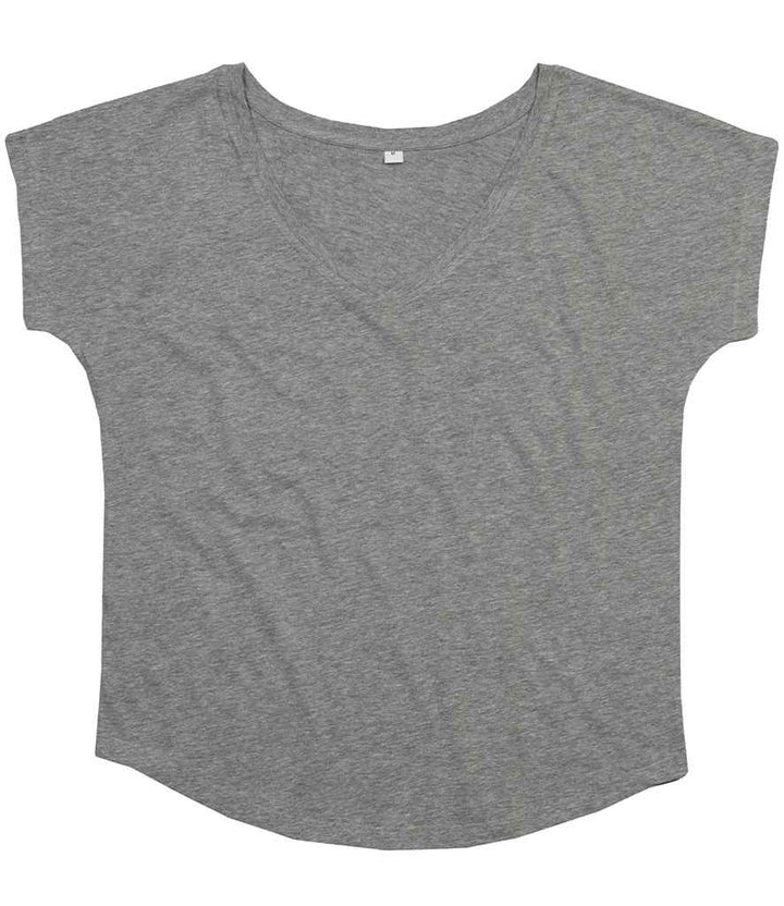 - Wide, self fabric bound deep V neckline.