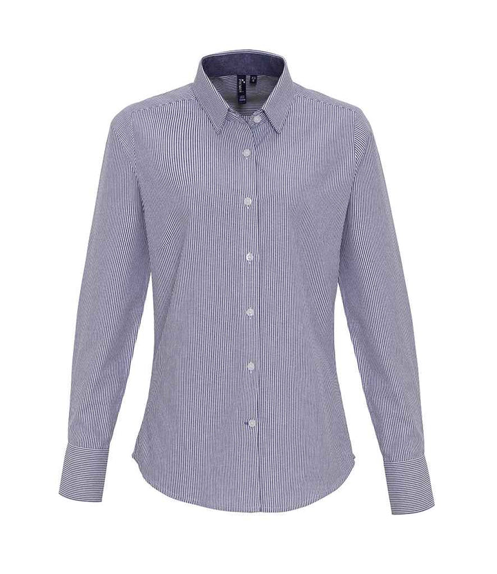 Premier Ladies Long Sleeve Striped Oxford Shirt